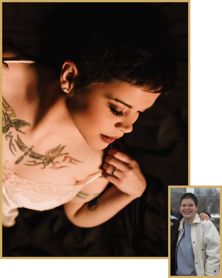 Hi! I'm Marina, owner of A Million Monarchs Boudoir. As a woman and business owner, I know the importance of feeling confident and beautiful from the inside out. That's why I founded the Monarch Transformation boudoir experience – to help women find their inner power and beauty.
