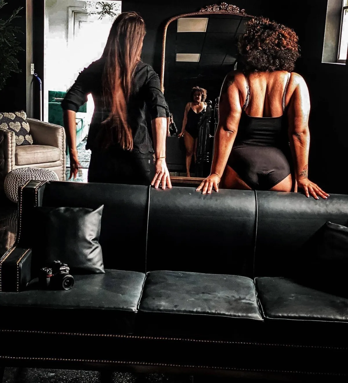 We do light skin retouching including removing temporary acne, lighting/color adjustments, and skin smoothing. We do not alter your body in any way. Truthfully, that does more damage in the long run. Plus, we are experts in the art of Dark Glamour™ boudoir lighting, angles, and posing to bring out your best natural features. We believe in celebrating the foundation of your individual beauty. Our team is dedicated to guiding you through your very own Monarch Transformation.